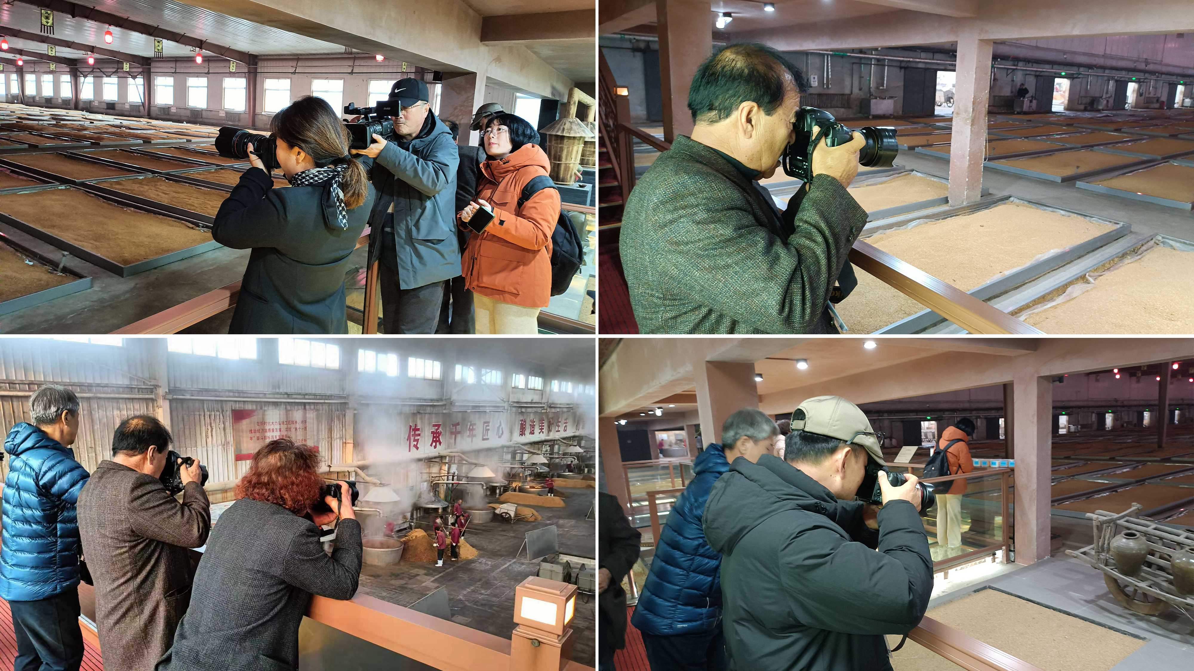 随后,中韩摄影家们先后参观了和记娱乐官网烧锅酒博物馆与生产厂区,深入了解了从选粮、发酵、蒸馏到陈酿的全流程工艺。摄影家们穿梭于古朴的窖池与现代生产线之间,不断按下快门,记录下工人劳作的身影、蒸汽氤氲的车间场景,以及充满岁月痕迹的酒器文物。光影交错间,北方白酒酿造的文化底蕴与工业美学被一一凝固定格。